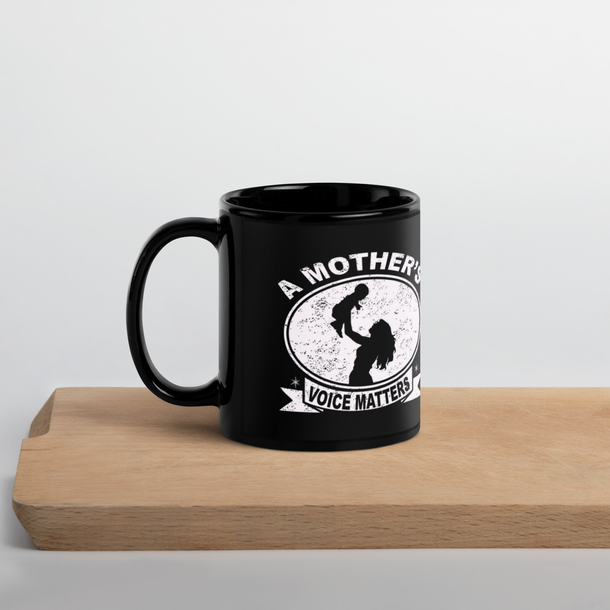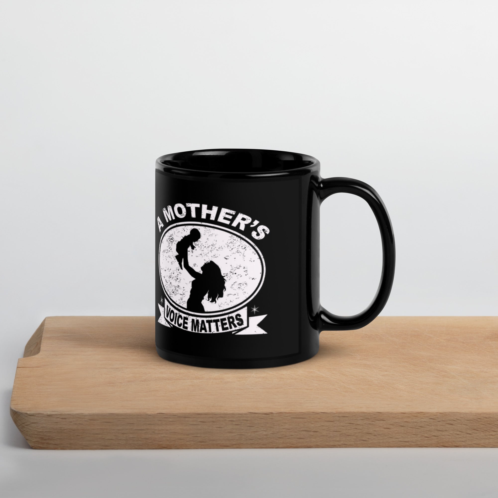 Embrace your favorite beverages with the A Mother's Voice Matters black glossy mug. This stylish and sturdy mug is perfect for enjoying your morning coffee, afternoon tea, or any drink you love.