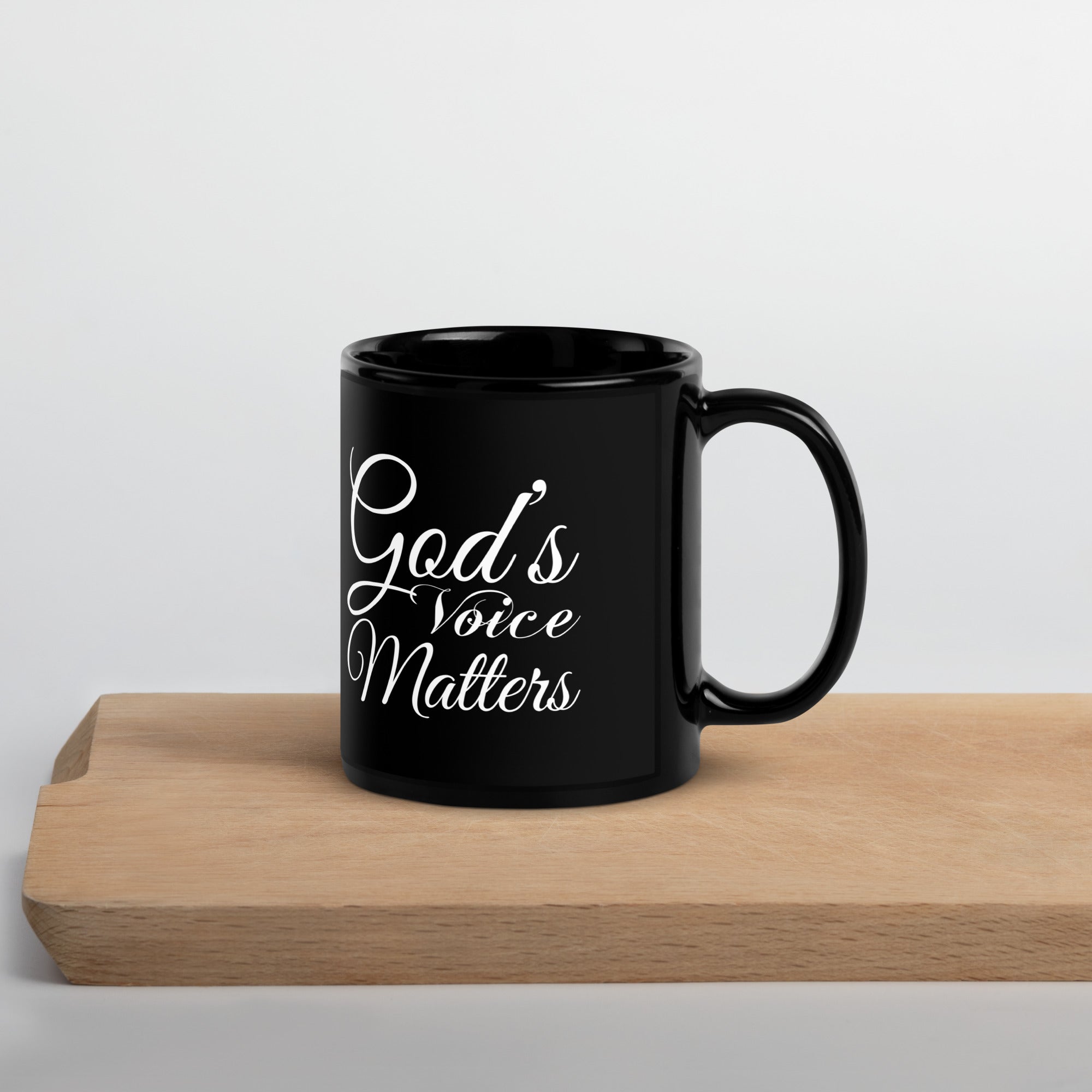 Enjoy your favorite beverages in style with the God's Voice Matter Black Glossy Mug!