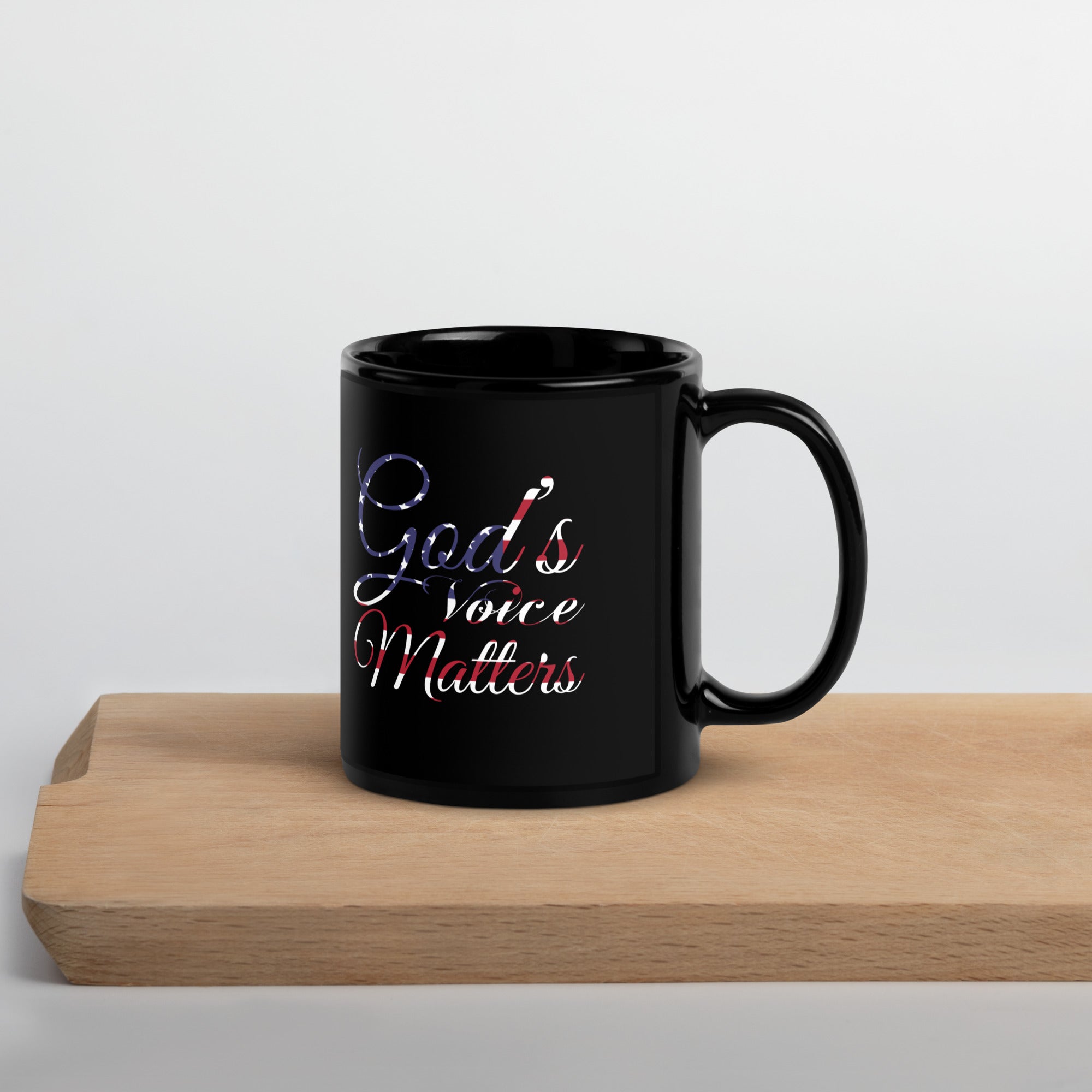 Enjoy your favorite beverages in style with the God's Voice Matter Black Glossy Mug!