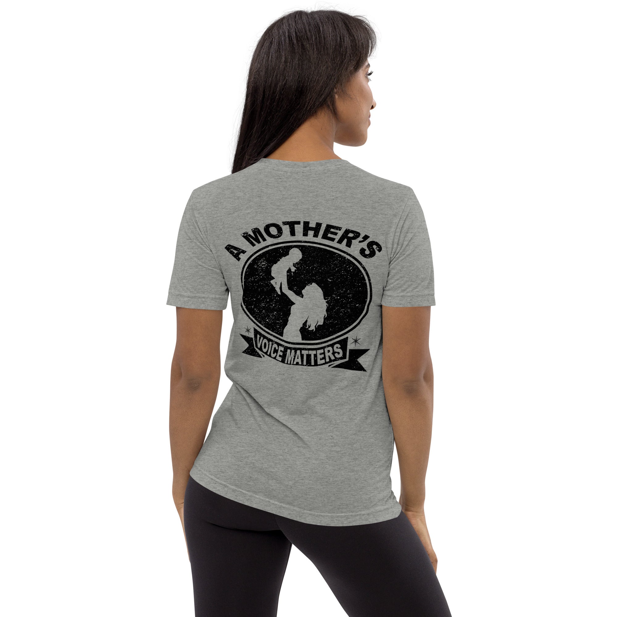 Elevate your wardrobe with the A Mother's Voice Matters short sleeve t-shirt, designed for comfort and style. Crafted from a high-quality tri-blend fabric, this t-shirt offers a vintage, fitted look that you'll love to wear again and again.
